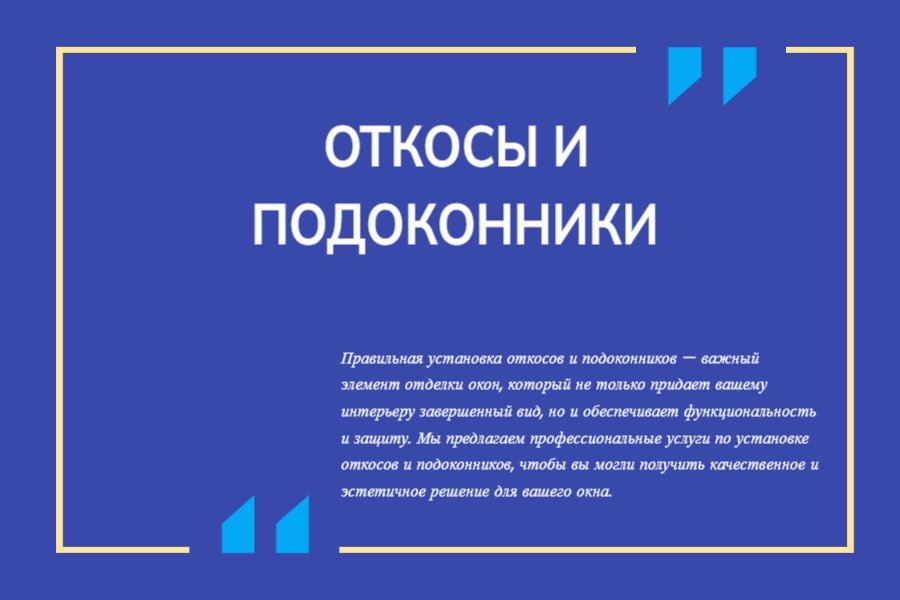 Правильная установка откосов и подоконников — важный элемент отделки окон, который не только придает вашему интерьеру завершенный вид, но и обеспечивает функциональность и защиту. Мы предлагаем профессиональные услуги по установке откосов и подоконников, чтобы вы могли получить качественное и эстетичное решение для вашего окна.